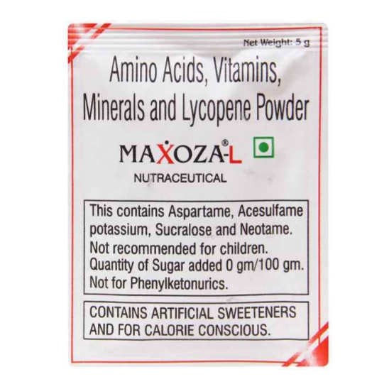 Maxoza-L Nutraceutical Powder has essential nutrients like amino acids, vitamins, minerals and lycopene to meet your daily health requirements and boosts immunity and overall health. It also keeps a check on nutritional deficiencies.