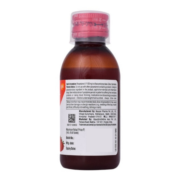 Crocin 120 Suspension Strawberry Flavour is a non-steroidal anti-inflammatory medicine used in children to relieve pain caused by teething, immunisation, ear ache, headache, cold and flu symptoms. It contains paracetamol as an active ingredient that helps relieve pain and lower body temperature.