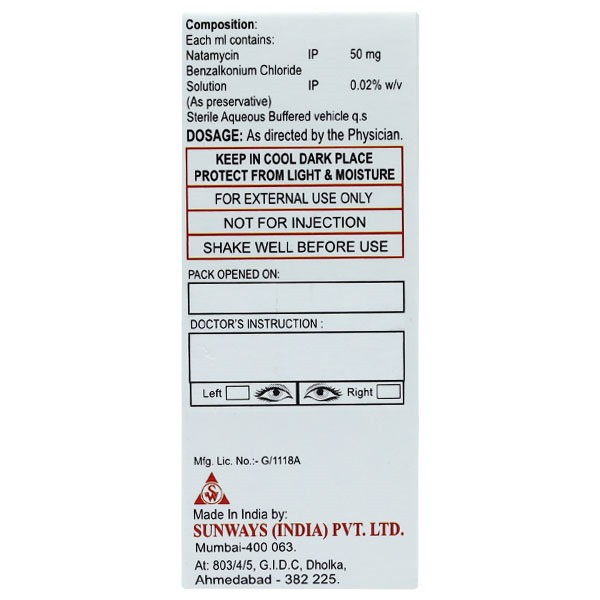 ZONAT 5% contains Natamycin which belongs to the group of medicines called Ophthalmic anti-fungal agents. It is used to manage fungal infections of the eye such as blepharitis (eyelid infection), conjunctivitis (swelling of conjunctiva), and keratitis (swelling of cornea).
